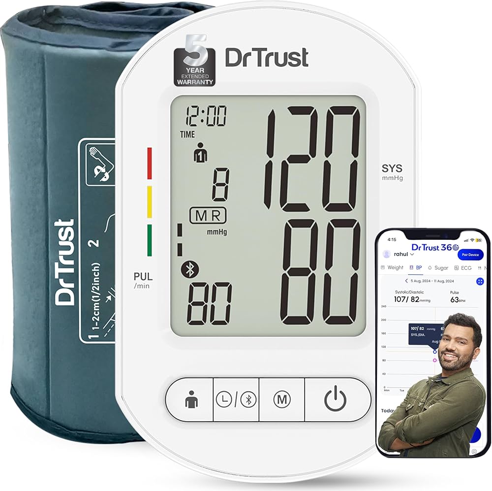 The Dr Trust BP Check Pro Core, Model BT-124 is a modern digital blood pressure monitor designed for accurate, convenient, and smart home monitoring. Equipped with Bluetooth connectivity, it allows you to sync readings to your smartphone for tracking and analysis over time.